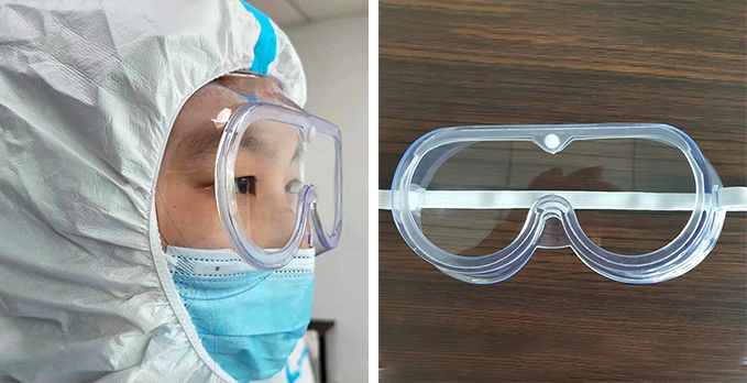 护目镜: 产品规格:镜架:180mm*85mm*55mm,镜片:140mm*60mm 产品特点:镜片材质:PC,PET,镜架材质:PVC,双面覆膜,双面防雾 产品用途:用于公共场所企事业单位特殊环境操作、执勤工作人员佩带,防止接触到具有潜在感染性患者分泌物、体液、血液飞溅或泼溅,起到阻隔、防护作用。![]()